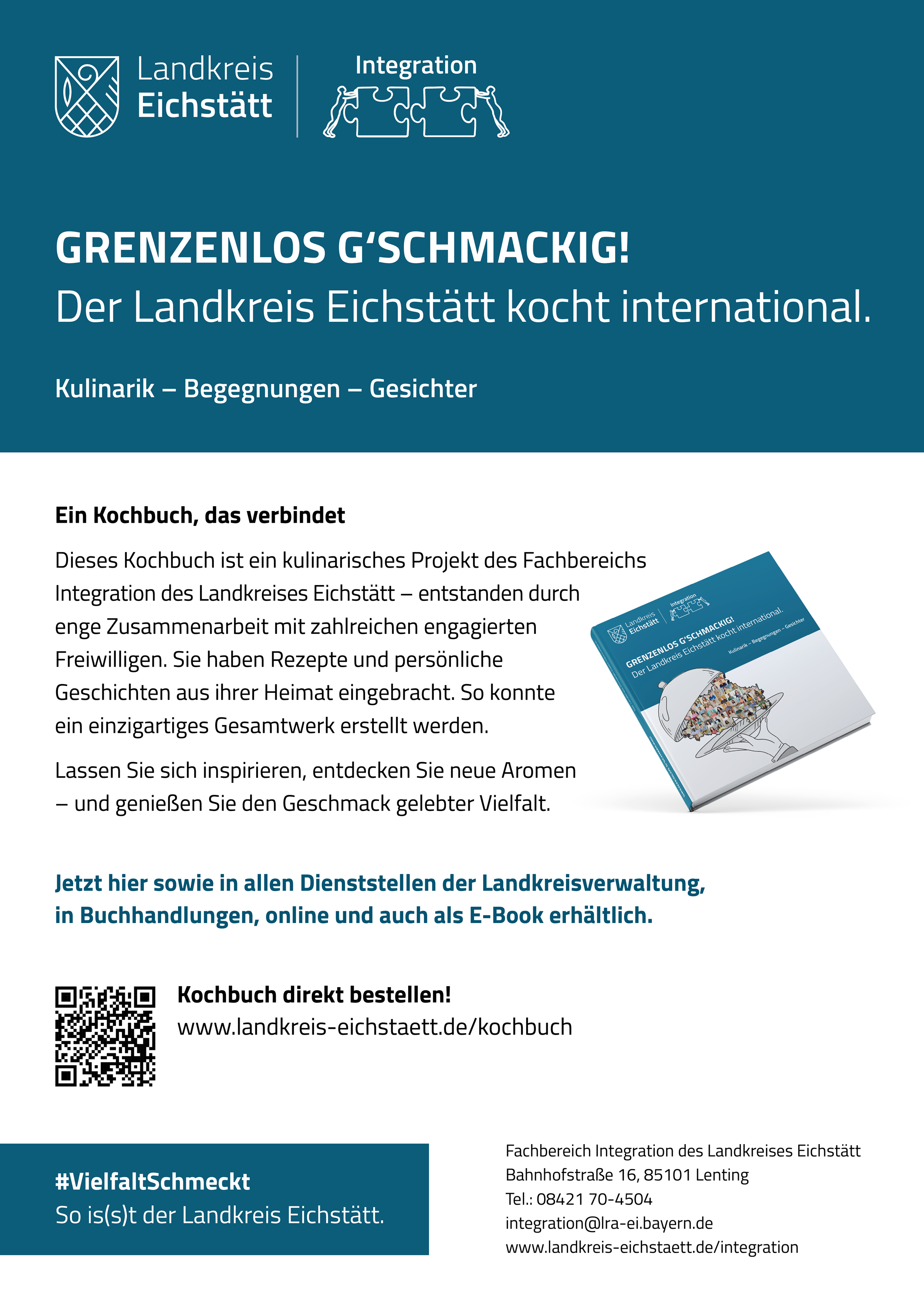 Dieses Kochbuch ist ein kulinarisches Projekt des Fachbereichs Integration des Landkreises Eichstätt.